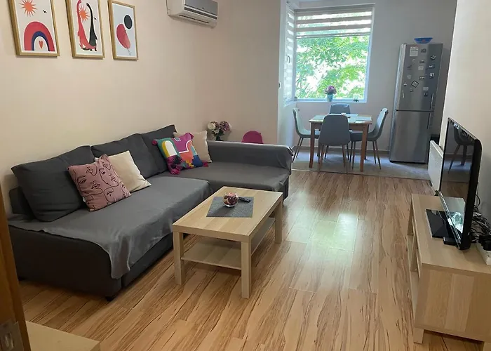 Localizado no bairro de Burgas Center, a 10 minutos de distância de Centro Cultural Casino, o apartamento Geri de 45 m^2 tem capacidade para acomodar até 4 hóspedes. Este apartamento dispõe de kitchenette com fogão de vidro, aparelhos de cozinha e geladeira.